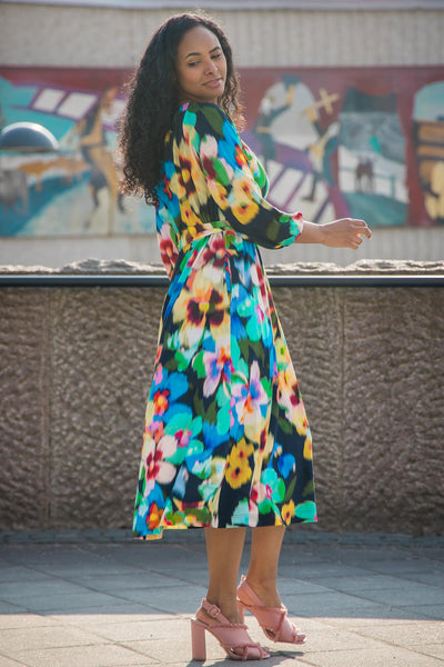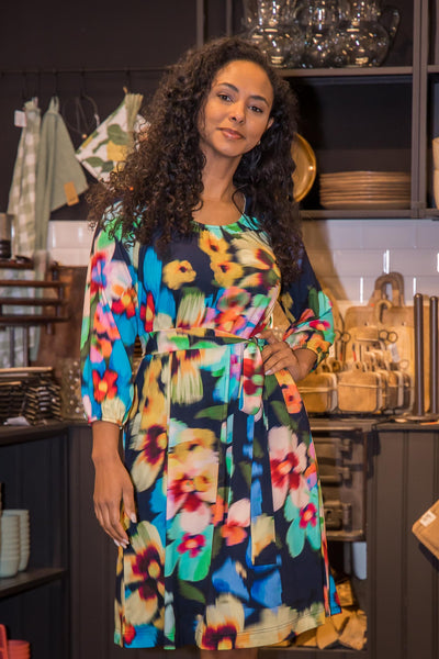 Avslappnad blommig rund halsad långärmad ihålig tröja