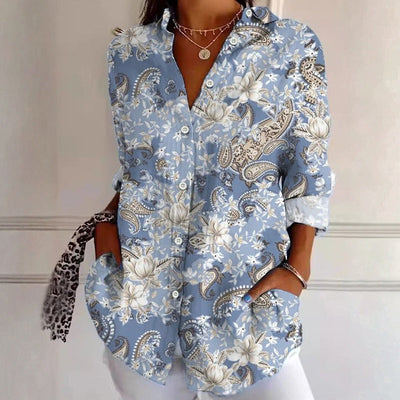 【Långärmad】Avslappnad Blommönster Blus