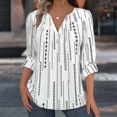 【Långärmad】Avslappnad Mönstrad Blus