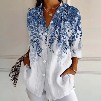 【Långärmad】Vintage Blus Med Bladmönster
