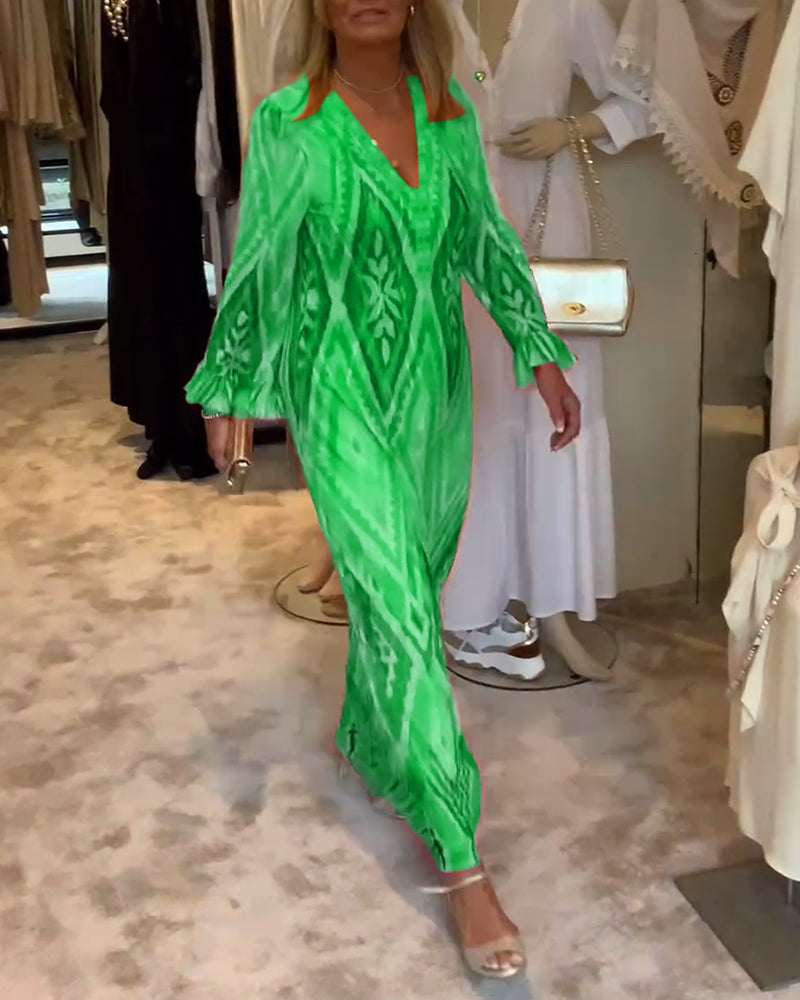 • Chic design: Den här klänningen har ett snyggt geometriskt tryck, perfekt för en modern och sofistikerad look.