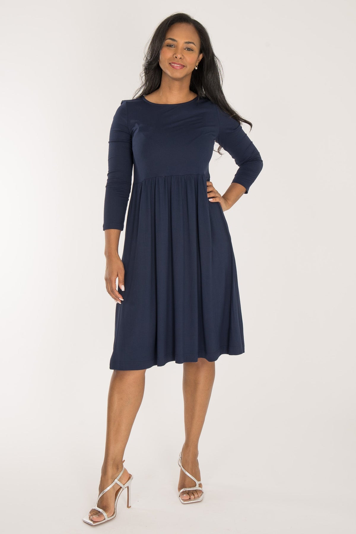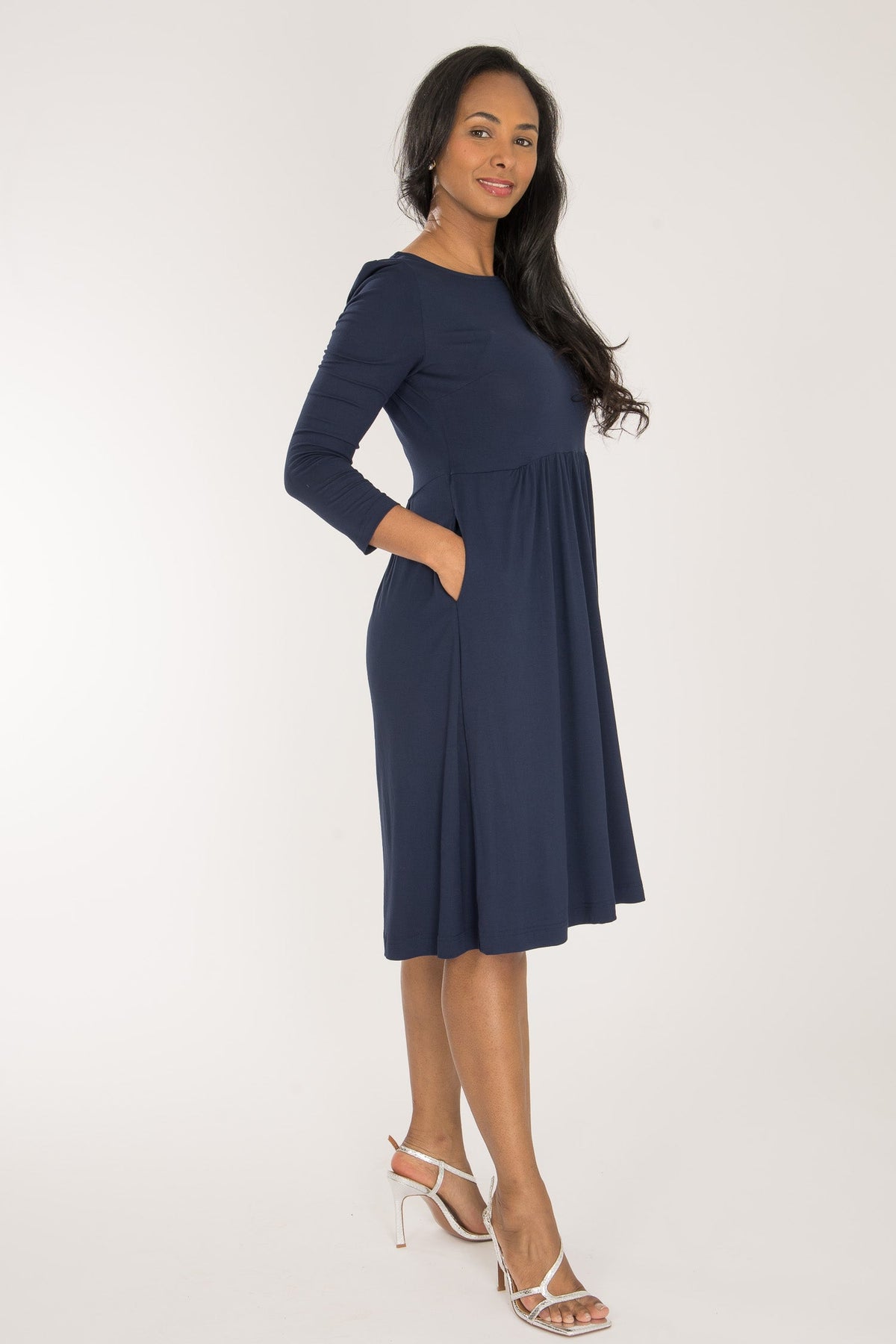 Ideal dress finns i två längder: en vadlång och en knälång version. Välj den som passar just din stil.