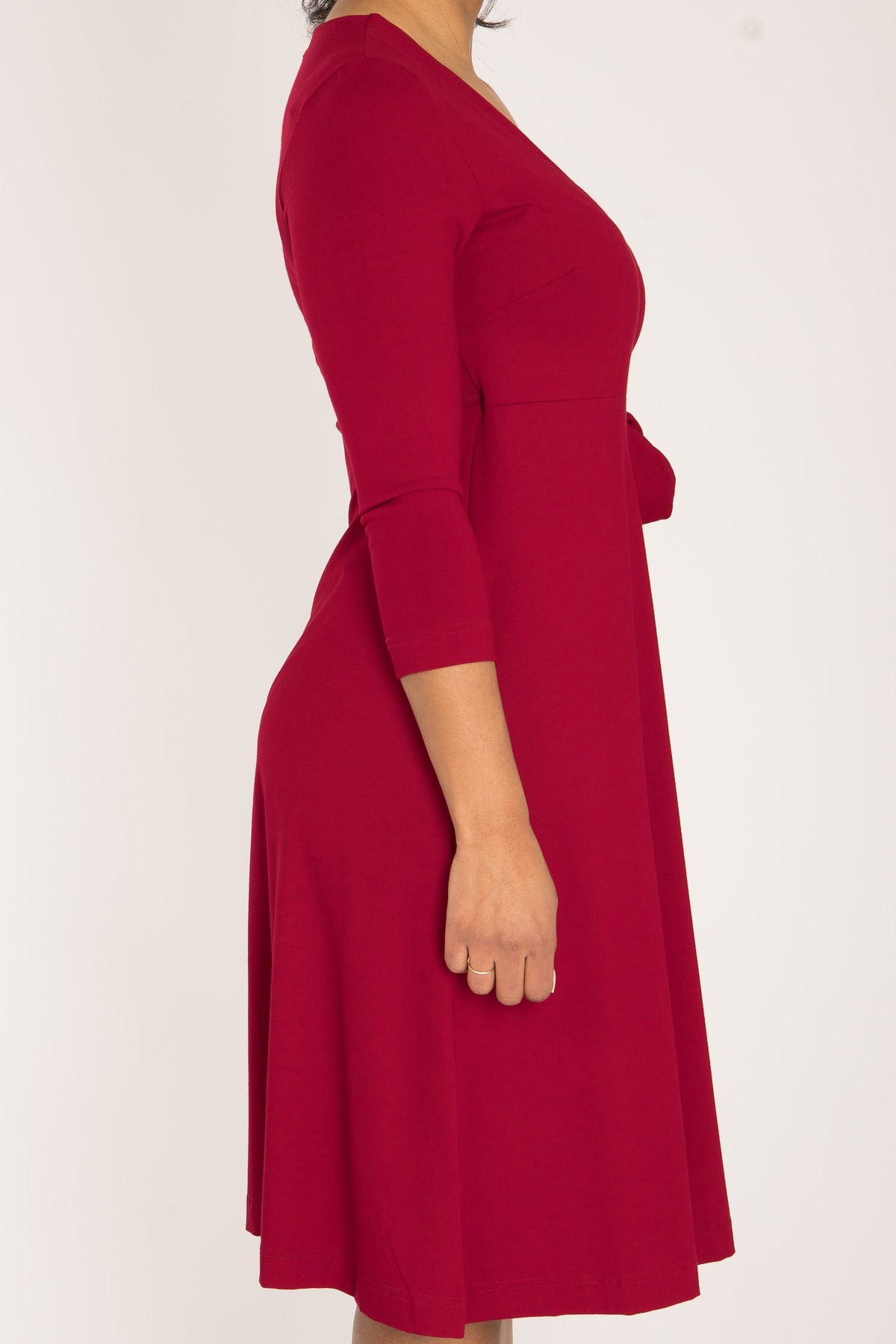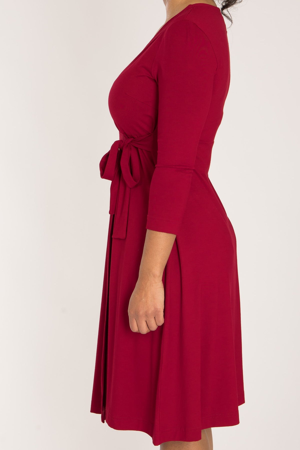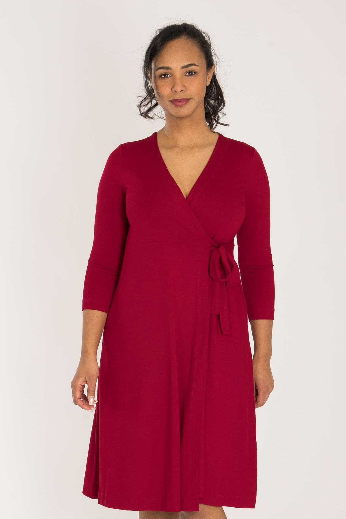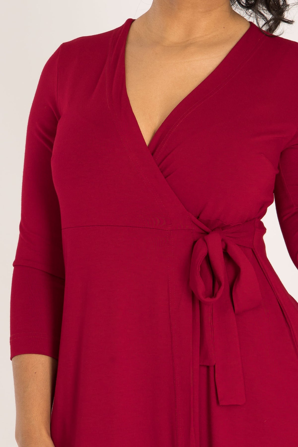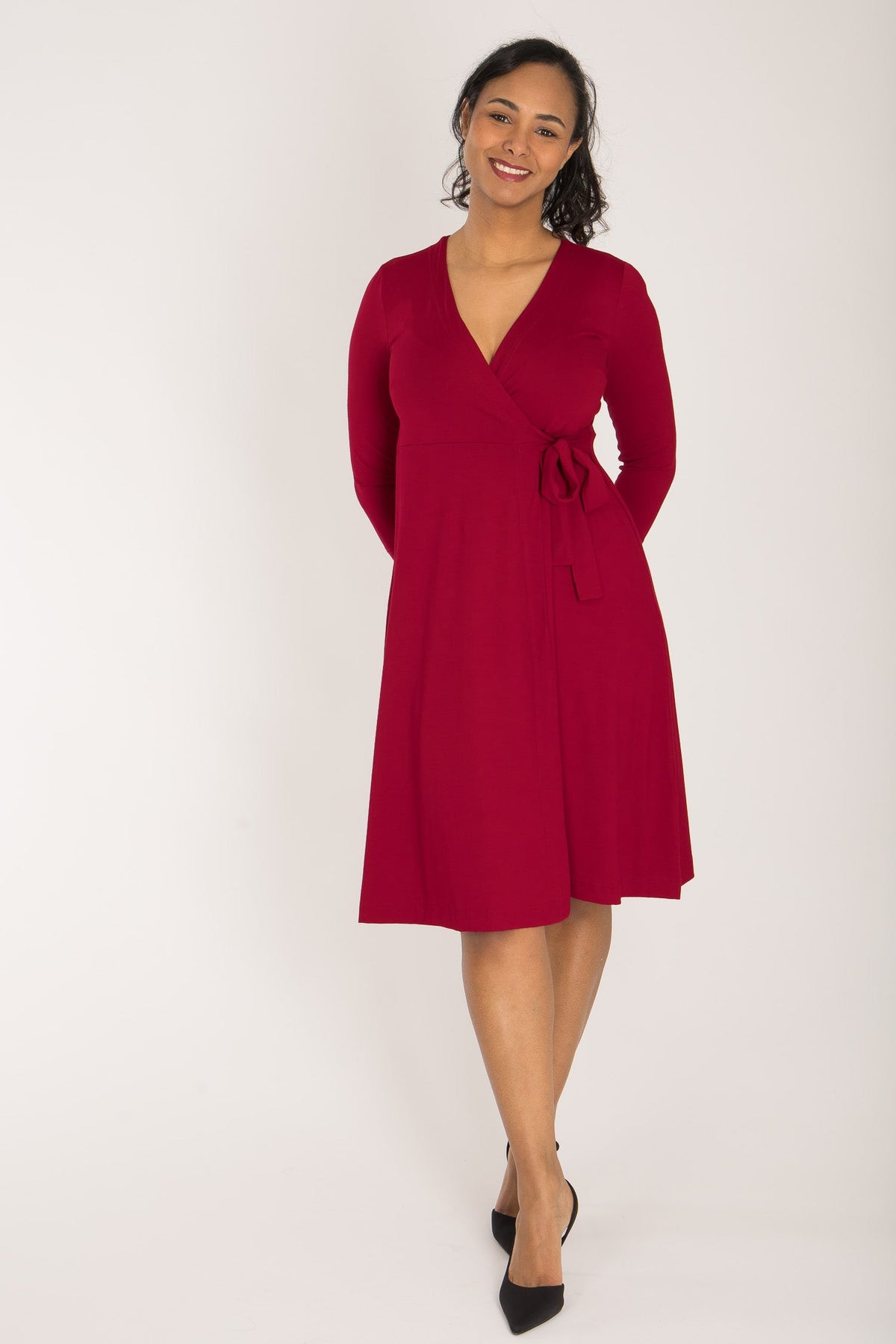 För att du ska kunna hitta den perfekta klänningslängden för dig, finns den här omlottklänningen i två varianter – en som når vaden och en som går till knäet.