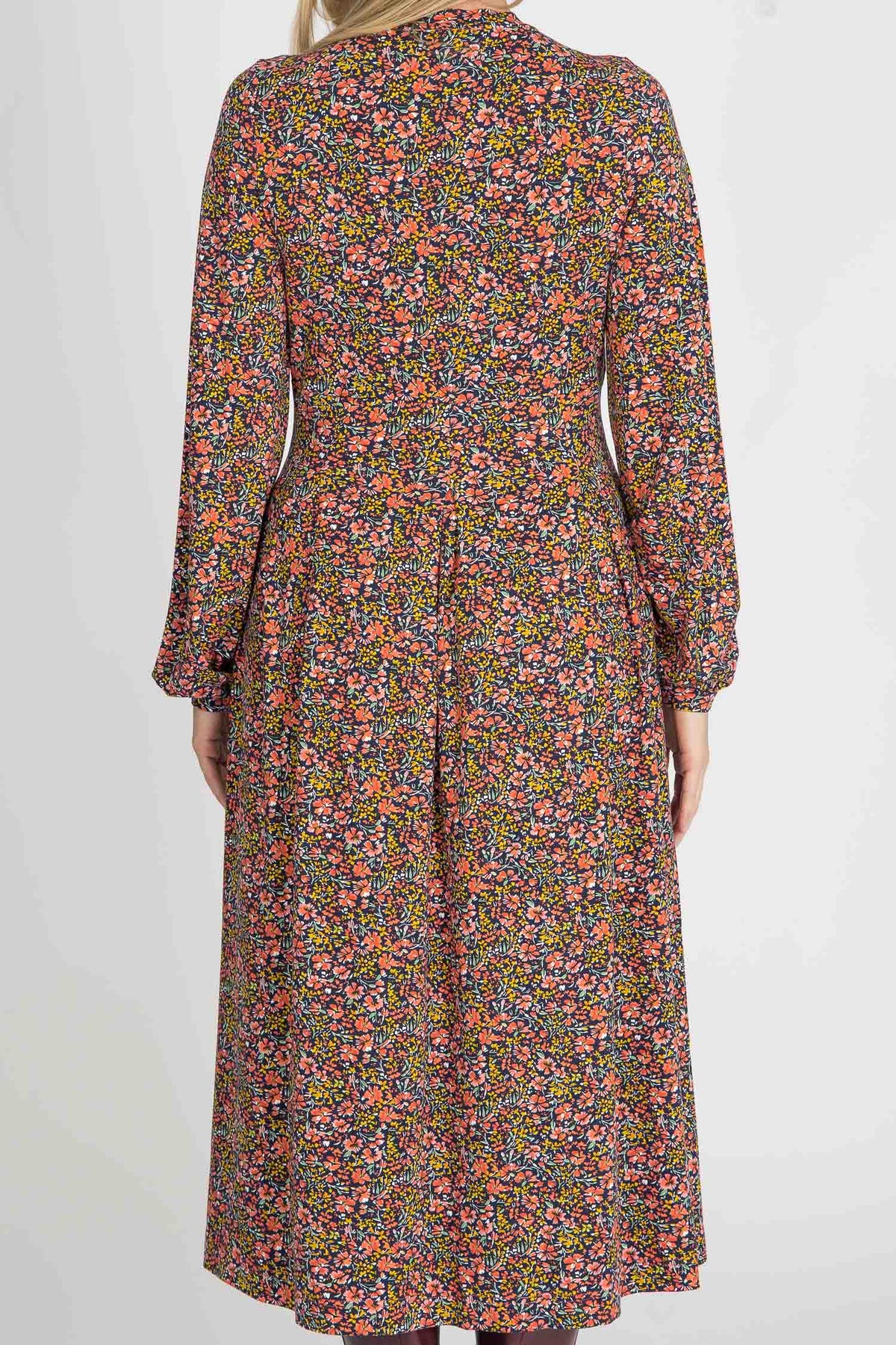 Pleated waist midi jersey dress - Navy flowers
