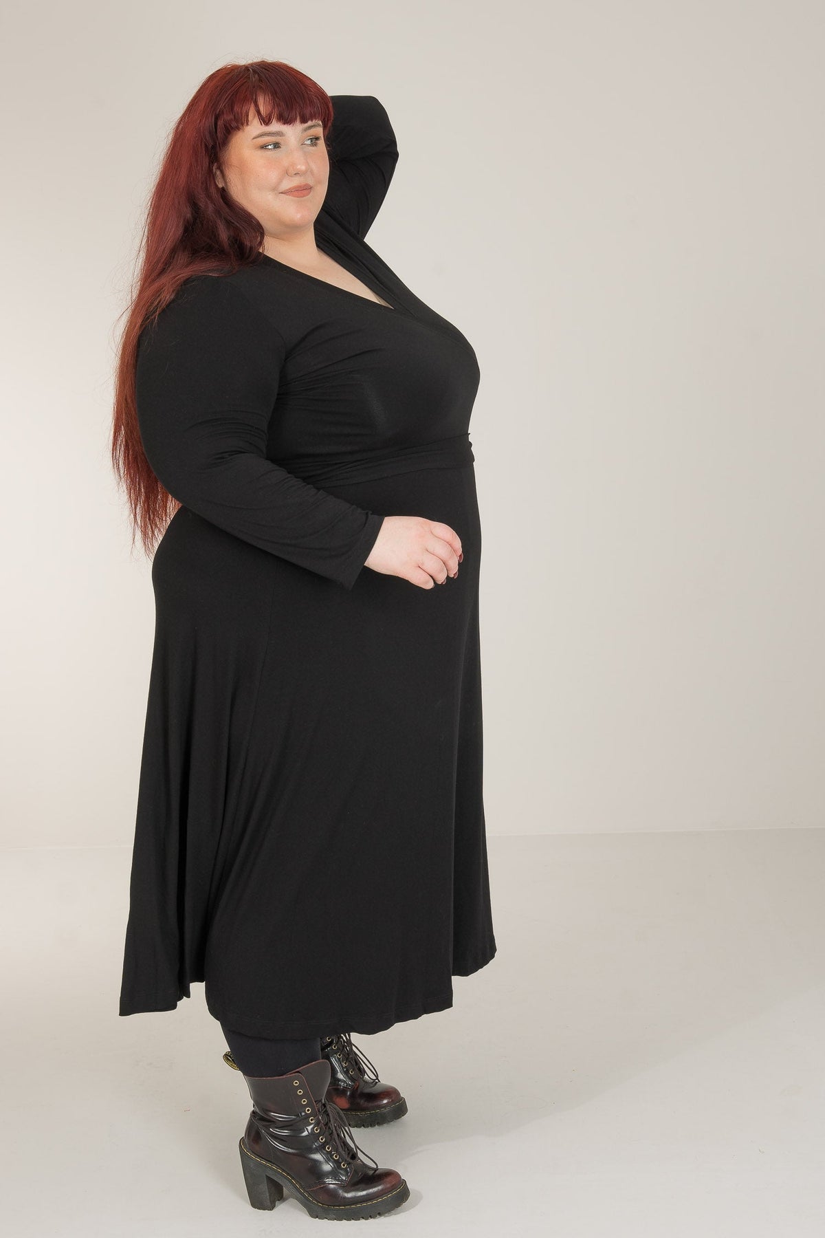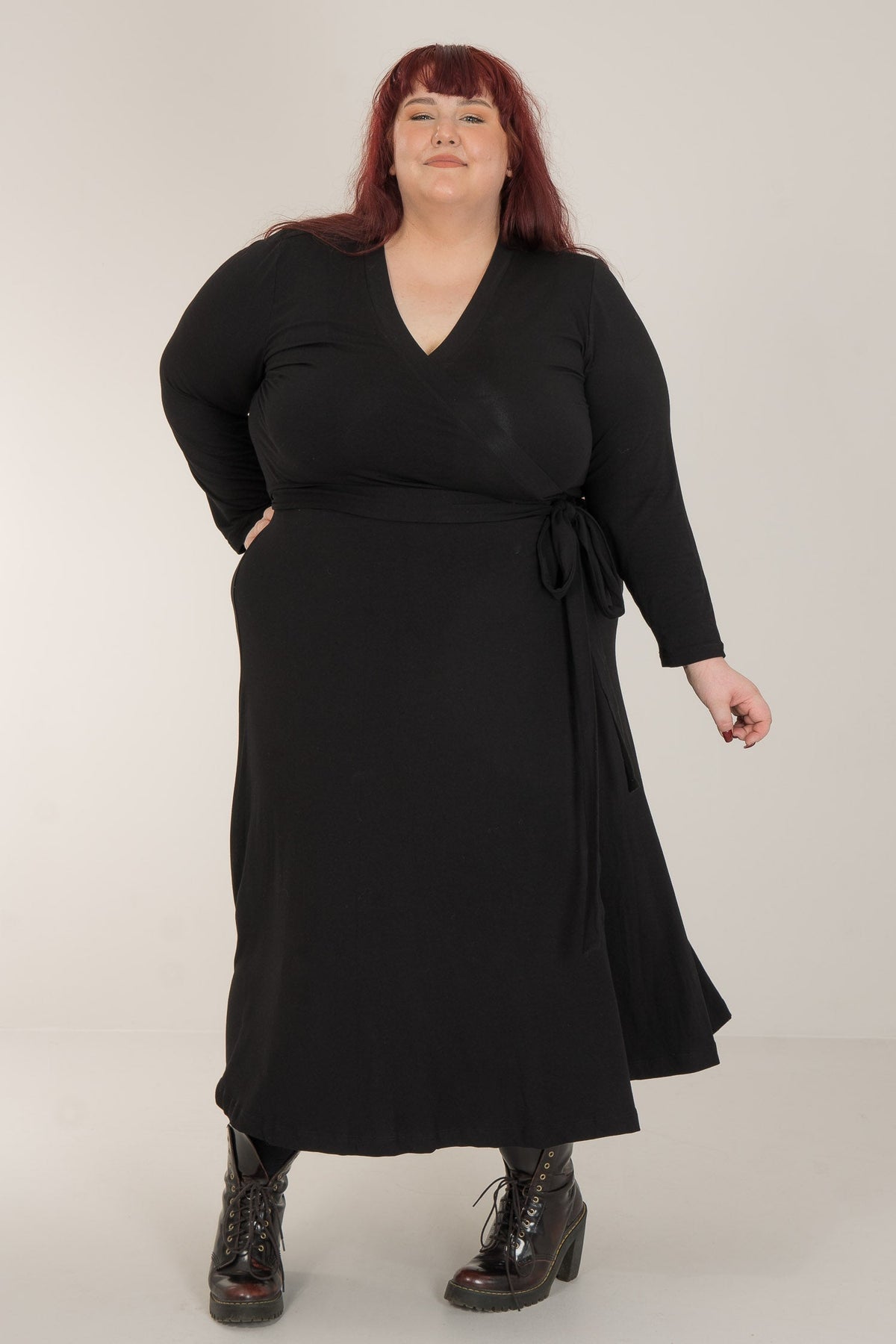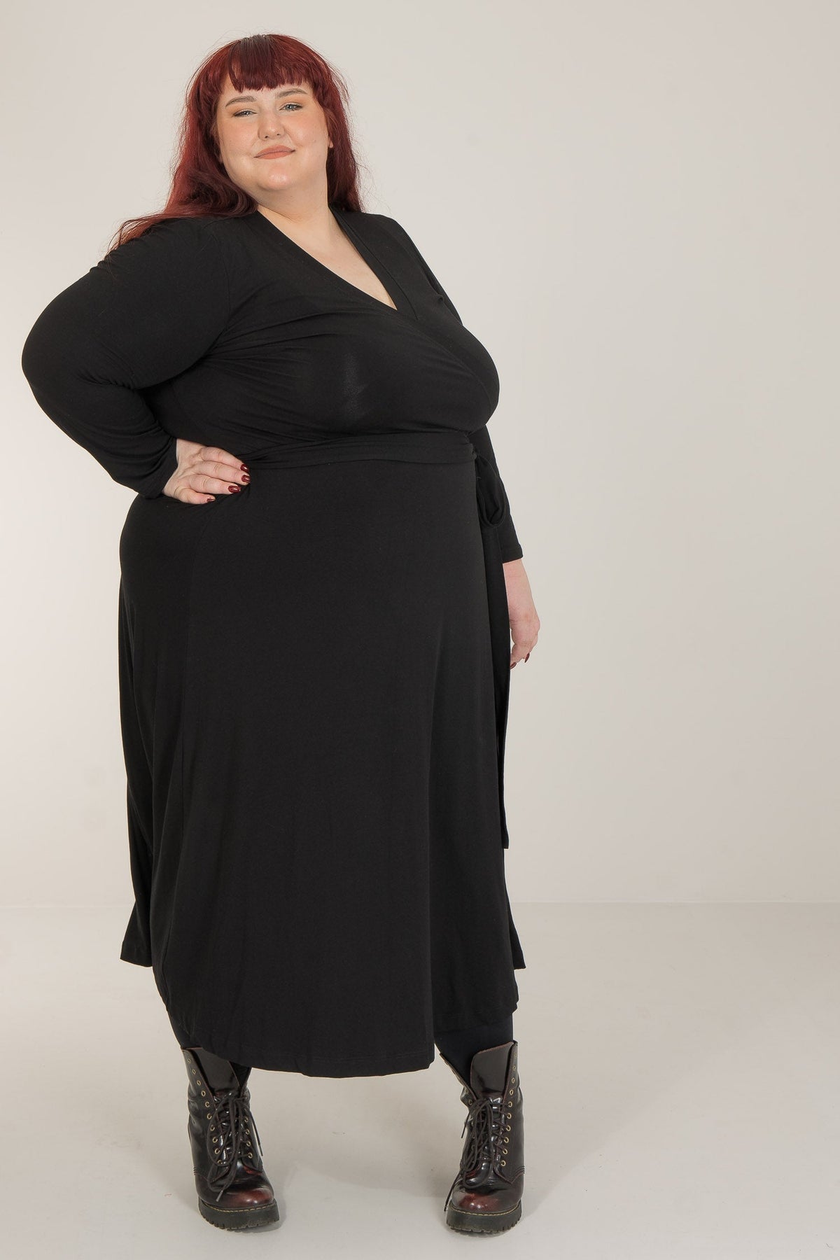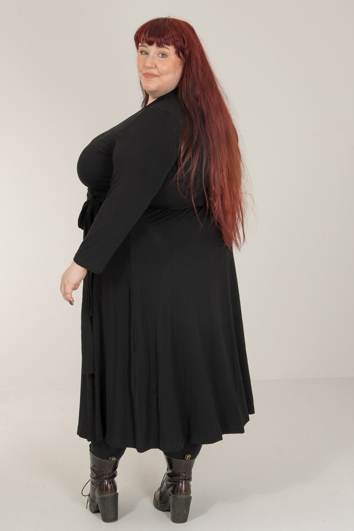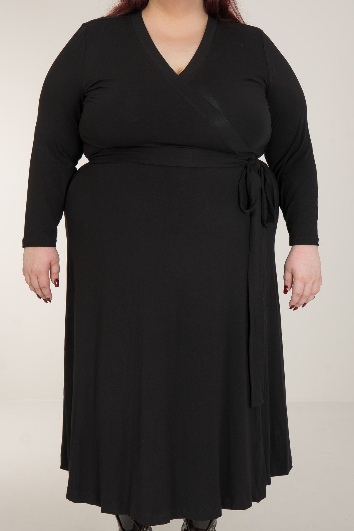 Omlottklänningar har en särskild plats i våra hjärtan, då de kombinerar smickrande siluetter med överlägsen komfort. Här är vår vadlånga modell, sydd i stretchig trikå med knyt i midjan och vidd i kjolen. Bestie wrap dress återkommer i vår kollektion och är en av våra mest omtyckta klänningar.