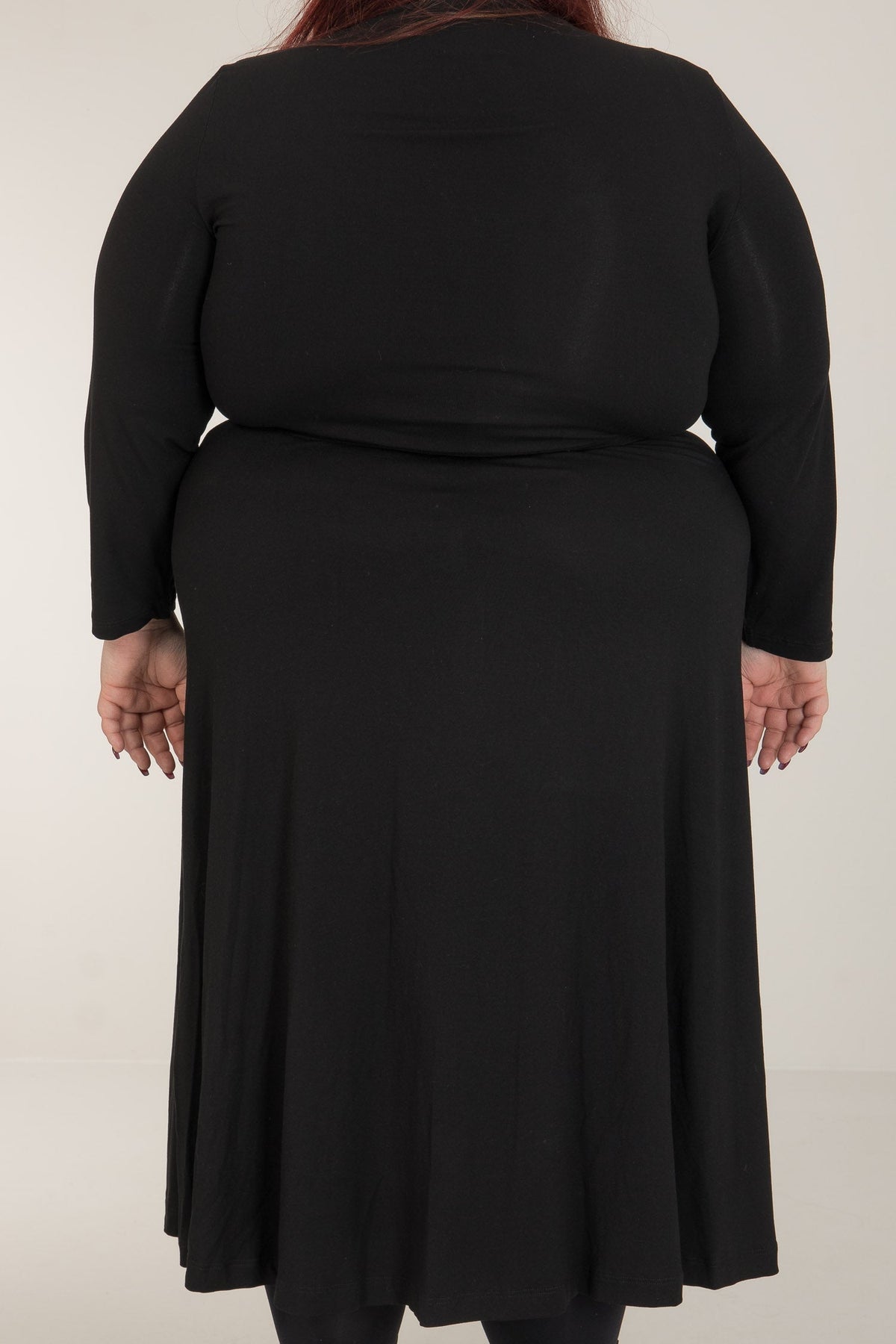För att du skall kunna hitta din perfekta klännings-matchning kommer den här trikåklänningen i en vadlång och en knälång variant.